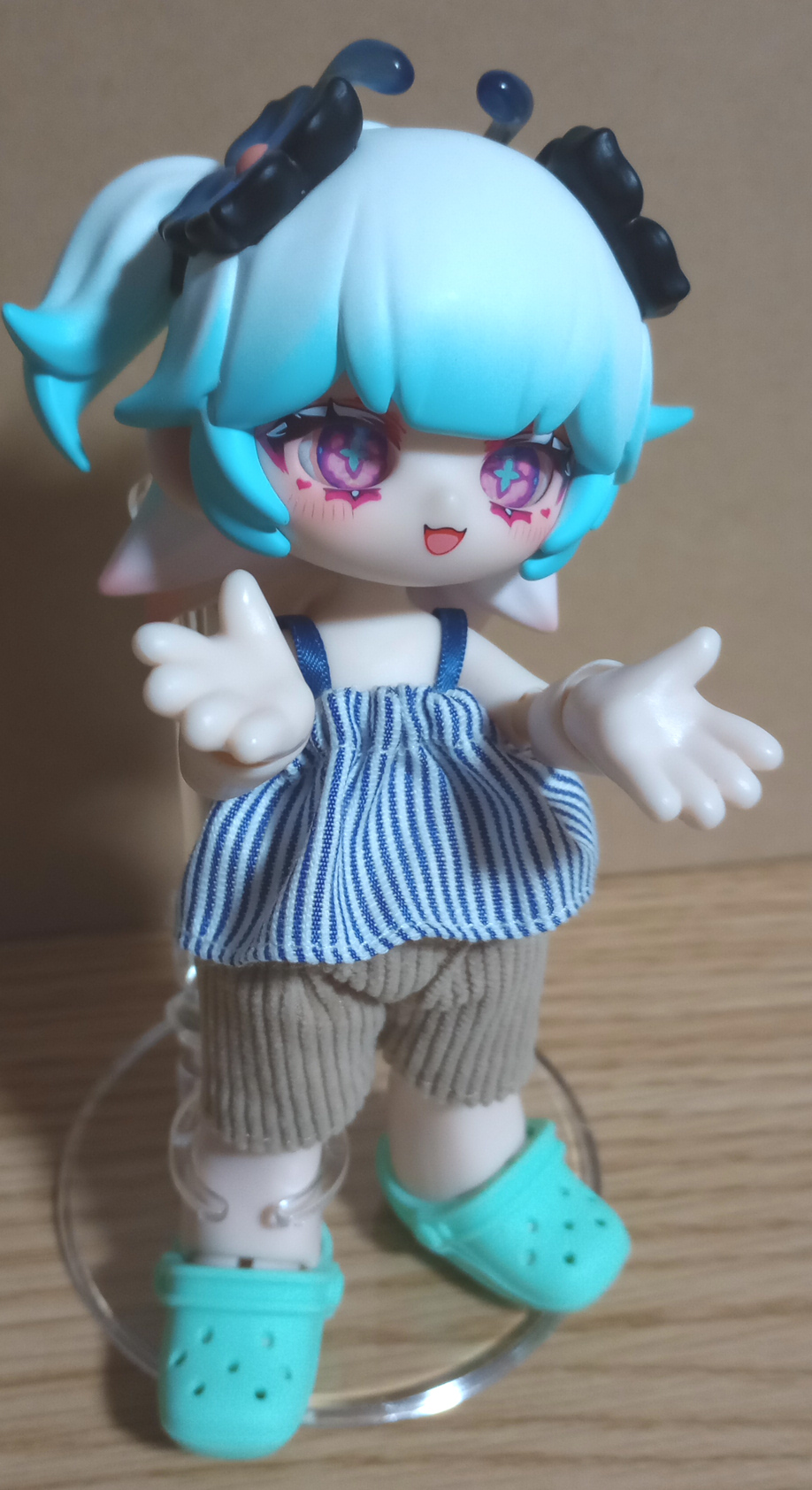 ヘッド5cm(触覚や髪飾りは除く)+ボディ(首から下の部分)10cmの全長15cmです。