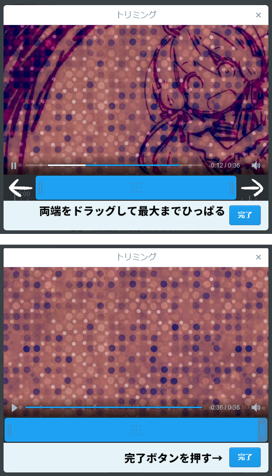 長い動画だとこんな画面出る事があるので、出たら青いゲージの端をドラッグして最大限まで広げるだけ。