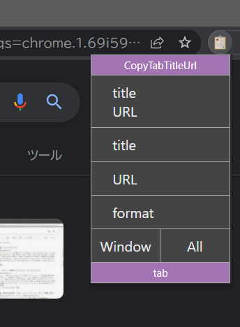 開いてるタブのURLやタイトルを簡単にコピーできます。