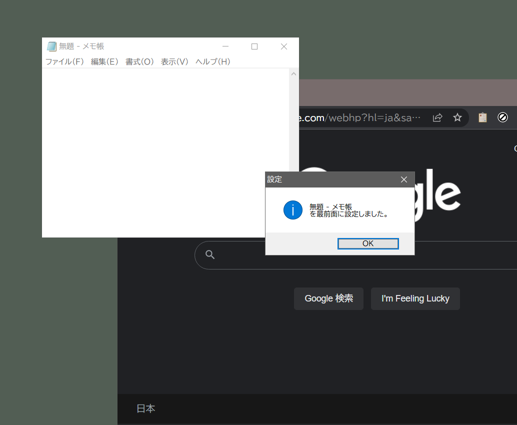 ウィンドウがアクティブな状態でPauseを押すだけで他のウィンドウの下に隠れなくなります。解除する時はまたPauseを押すだけ。
