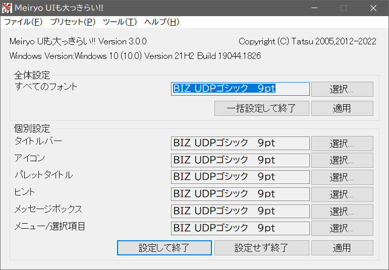 システムフォント変更ソフト。