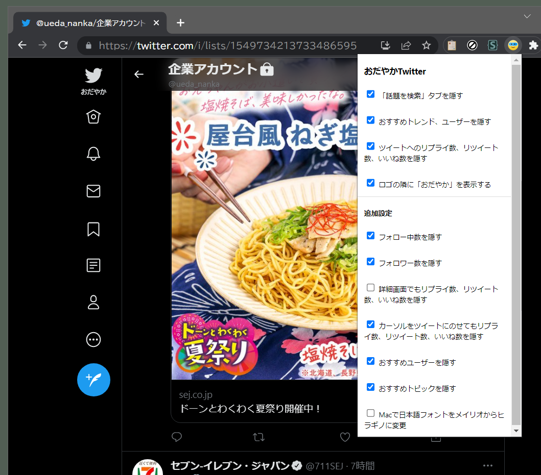 ブラウザ上にTwitterを表示してる状態じゃないとオプション画面が出せないので注意。