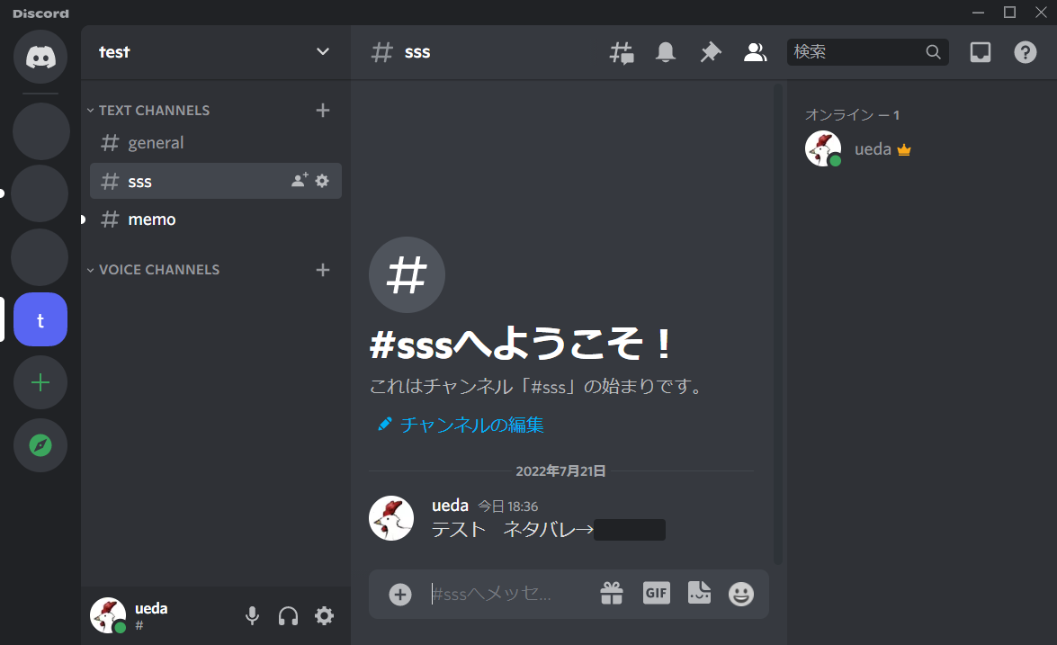 文字のチャットもできる(スクショの通りネタバレ隠したりできる)。ブラウザでも使える。画面共有にも対応。