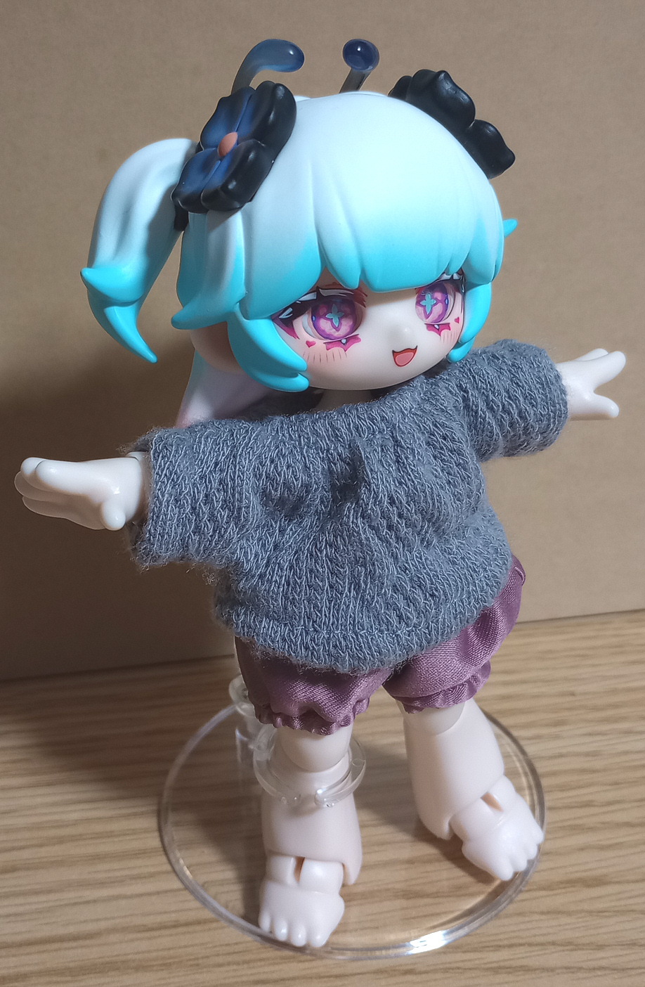 ヘッド5cm(触覚や髪飾りは除く)+ボディ(首から下の部分)10cmの全長15cmです。