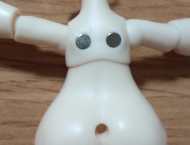 外すと後ろから小さく丸い磁石2個と穴1個がが見える状態になります。