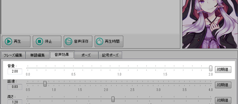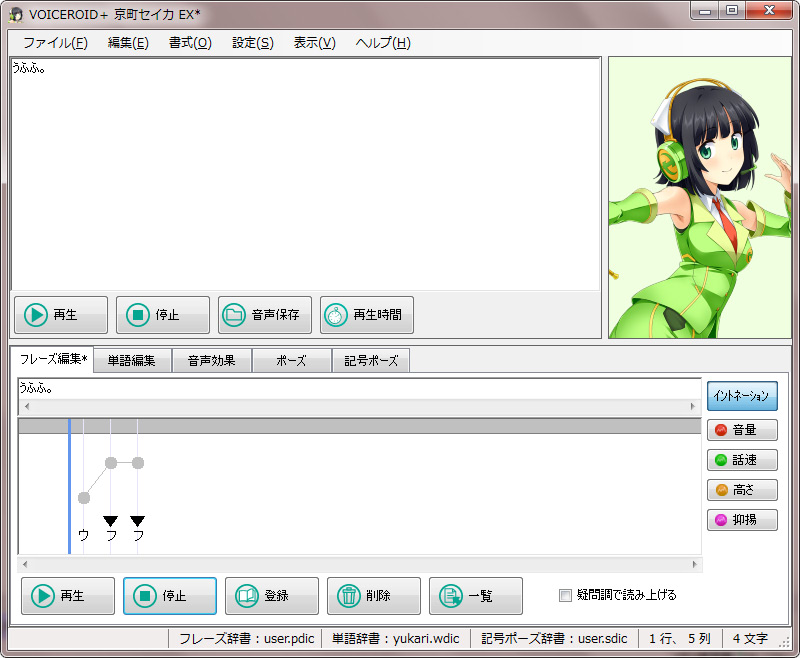 「うふふ」と言わせるとふが発音できてない等微妙に気になる点もある(ちなみに「ふ」を「無声化しない」にすると直る。一番上の画像は修正してみたところ)