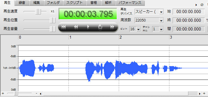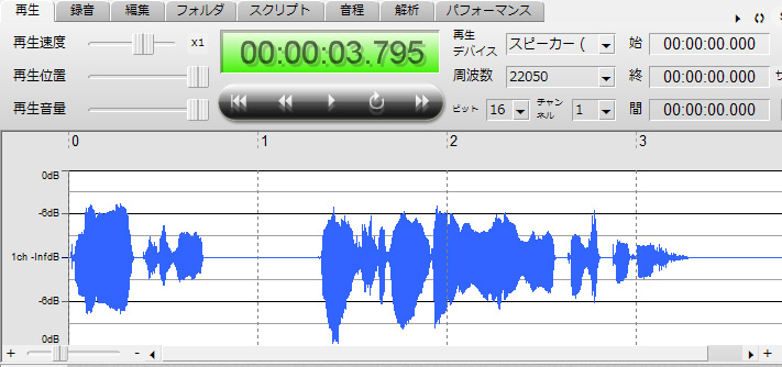 ゆかりさんの声をSoundEngine Freeで開いたところ。