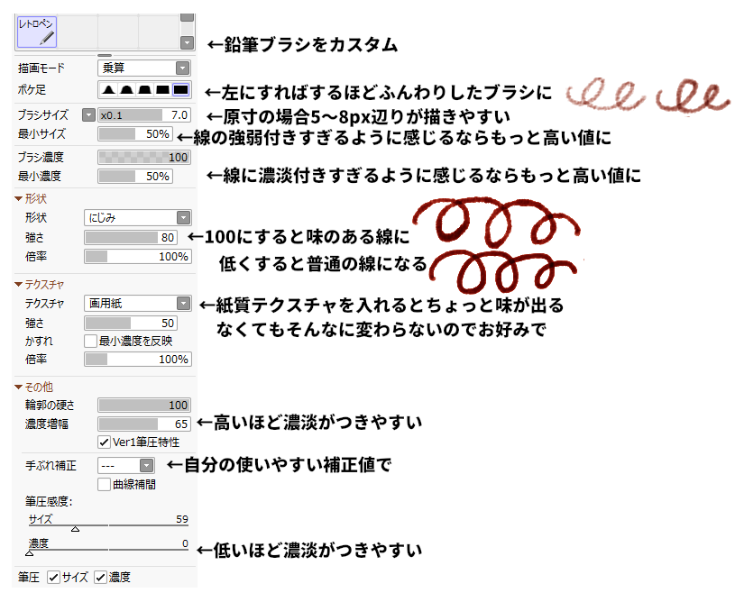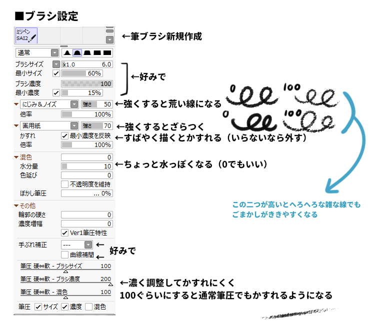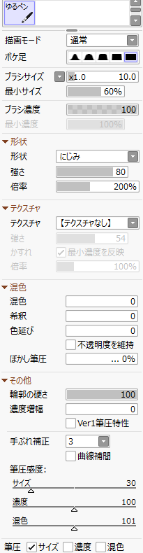 SAI2の最新版で折り返し機能が進化したためブラシもそれに合わせて作り直しました。
