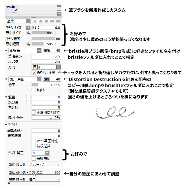 描き味が悪かったら軟鉛筆ブラシのほうを使ってみてください。