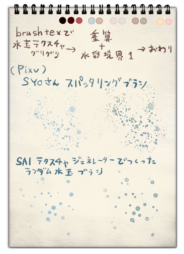 自分好みの雰囲気になるまでフリー配布テクスチャ(ブラシ)探して模様や色や色の濃さや透明度試行錯誤してみるといいんじゃないですかね!
