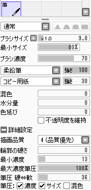 ブラシのベースが違うというだけでどちらにしろ鉛筆風の描き味なのは変わらない。筆バージョンの方が描き易い気がする。