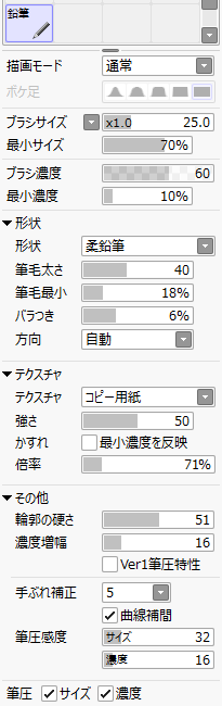 昔別な人が配布されていた「鉛筆300」ブラシを参考に作ったのでそれなりに似ています。